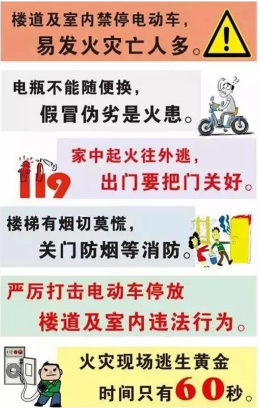 那是因為電動車燒起來 真的很可怕?。?! 到底有多可怕? 完全不希望你經(jīng)歷 看這個實驗就好 ↓↓↓ 全國首次已用高層住宅樓 電動自行車火災(zāi)實驗 前段時間,蘇州消防的蜀黍們在完全真實已用的居民住宅(樓內(nèi)居民已撤場)內(nèi)開展類似測試,這在國內(nèi)還是第一次。 ▼看這圍觀的陣勢 ▼實驗所用的6輛電瓶車停放在負(fù)一層 (注:為了避免明火高溫對鋼筋混凝土樓板造成損害,破壞建筑穩(wěn)定性,在電動車上方蜀黍們使用了巖棉板進行阻隔防護。) ▼蜀黍們也準(zhǔn)備好滅火啦 一、實 驗 過 程 開始 點燃6輛電動車,真實模擬電動車因電氣線路故障引發(fā)火災(zāi)。 實驗開始時,負(fù)一層通往疏散樓梯間的防火門保持常閉,防火分隔完整。 待燃燒產(chǎn)生的濃煙充滿地下車庫后,人為打開連通的防火門,模擬物業(yè)管理不善,常閉式防火門開啟的狀況。 同時,保持2層、6層的樓梯間防火門開啟,在其中設(shè)置不同逃生測試科目。其余樓層防火門和窗戶全部關(guān)閉,完整展現(xiàn)高層建筑火災(zāi)煙氣流竄的煙囪效應(yīng)。 火勢蔓延過程 3分鐘:6輛車已被燒毀 你聽一首歌的時間 電動車就全部燒毀了 5分鐘:7樓已有濃煙 再過兩分鐘,如果你住2、3、4樓 濃煙已到門外,能見度估計為零 7樓也可見部分濃煙 這時候,你會怎么辦? 往下跑?往上跑? 都是錯誤的 模擬逃生階段 做好全副準(zhǔn)備的蜀黍們開始往樓下跑 模擬大家盲目向樓下逃生情景 是不是什么都看不到 不僅如此,這煙還是毒煙 不小心吸入后會產(chǎn)生惡心、昏厥狀態(tài) 長時間會致死 所以,樓道內(nèi)充滿濃煙的情況下 不要盲目往上跑或者往下跑 那正確的逃生姿勢是什么? 接著往下看 二、從實驗中應(yīng)該知道這幾件事 千萬不要把電動車放在樓道、室內(nèi)充電 特別是停放在首層充電,一旦著火,濃煙火勢會順著樓道蔓延,造成更大傷害。 停放室內(nèi)更危險。電動車不小心著火后,著火點距離自己很近。尤其很多人習(xí)慣過夜充電,我們處于熟睡當(dāng)中,無法察覺到起火初期狀況。等到被驚醒,火勢已大。 而且大火極有可能會封堵大門、窗戶,逃生幾率會很低。 所以,不要把電動車停放在首層樓廳、樓道內(nèi)、自己家中充電,最好白天充電完畢,晚上睡覺前拔掉電源。 電動車要經(jīng)常自查自檢 電動車火災(zāi)的成因不少是因為斷電保護裝置失效,電池長期處于浮沖狀態(tài)、線路老化、金屬導(dǎo)線接觸導(dǎo)致電池短接等。 所以大家購買的時候就要格外注意質(zhì)量問題,一定要到正規(guī)的服務(wù)網(wǎng)點進行選購,切不可怕麻煩、貪便宜,選用假冒偽劣商品。 另外,使用過程中也記得使用原裝電池和充電器,不要私拉電線充電,不要私自改裝,這些都是隱患。雨天騎行注意不要讓電動車進水,有問題一定及時找售后維修、更換。 樓道濃煙最好關(guān)門防煙 不少人一聽“起火了” 下意識地就往下跑或者往天臺跑 但這個是很盲目的逃生措施 有些情況其實不跑更安全 是的?。?! 尤其是在樓道內(nèi)濃煙較多 且著火點離自己有一定距離的時候 第一,你跑不過濃煙。無論你往上跑還是往下跑,樓道內(nèi)的濃煙就在那兒。一樓有,天臺有可能也有,因為煙會往上飄。 第二,煙里有毒。很多時候燃燒物多,塑料、布料、電動車……各種各樣的物質(zhì),著火后會產(chǎn)生不同的有毒氣體。一旦吸入幾口,身體不適,影響逃生。再吸多幾口影響生命。 這種情況下正確姿勢就是 關(guān)上房門 把濕毛巾、濕床單封堵門縫 (就是煙可能進來的地方) 撥打119告訴蜀黍你的位置 然后有防煙面罩戴上防煙面罩 有濕毛巾用濕毛巾捂住口鼻 等著消防蜀黍來救援 好了,還有這張圖片你要仔細看