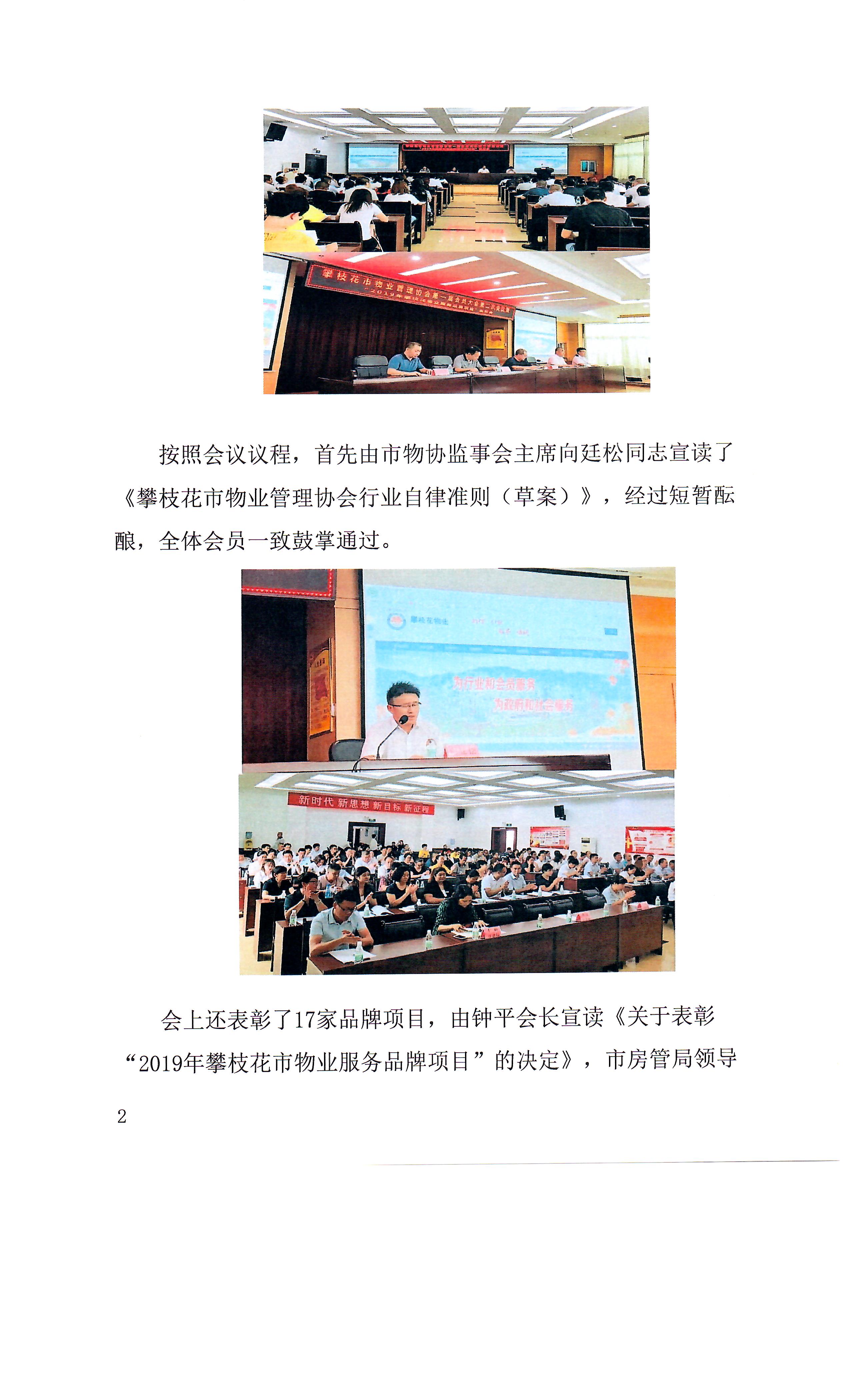 攀枝花市物業(yè)管理協(xié)會(huì)第一屆會(huì)員大會(huì)第二次會(huì)議暨“2019年攀枝花市物業(yè)服務(wù)品牌項(xiàng)目”表彰會(huì)成功召開